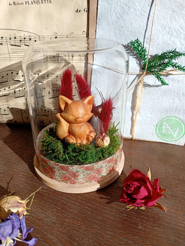 Cette jolie création sous cloche en verre perdurera dans le temps sans entretiens et vous permettra de concerver ce petit esprit espiègle durant des années.
