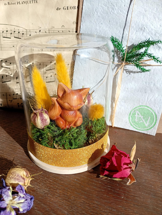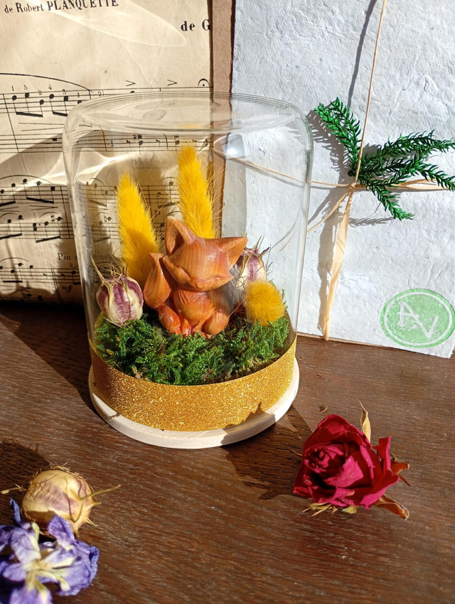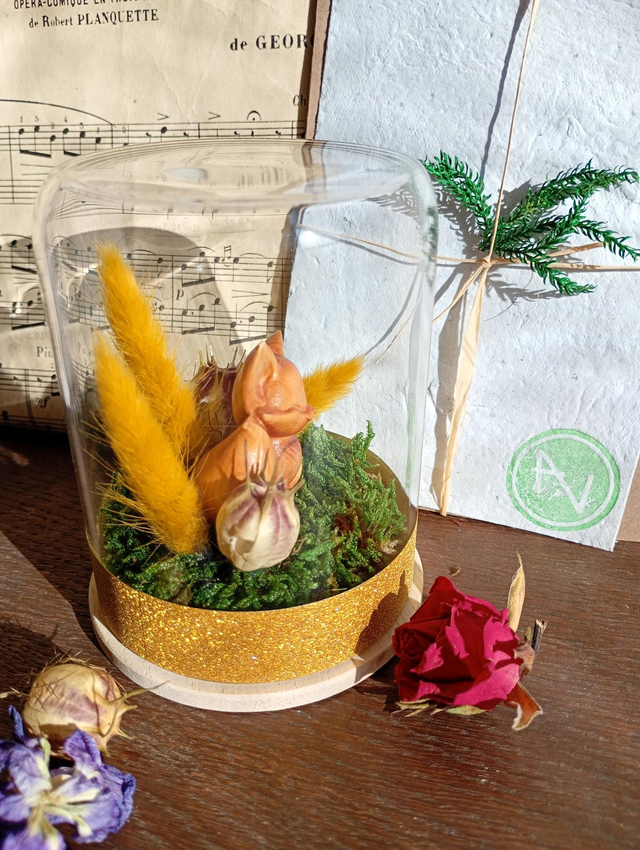 Cette jolie création sous cloche en verre perdurera dans le temps sans entretiens et vous permettra de conserver ce morceau de rêve à vos cotés durant des années.